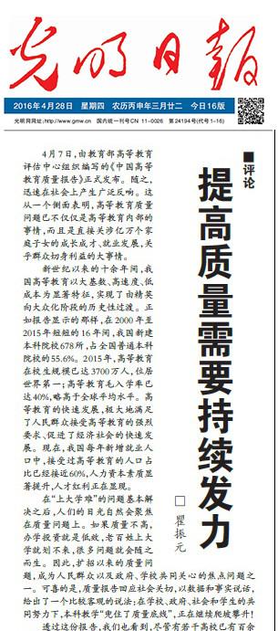瞿振元在《光明日報(bào)》撰文:提高質(zhì)量需要持續(xù)發(fā)力