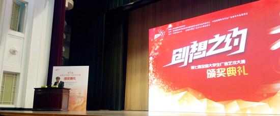 2015年11月21日,由教育部高等學(xué)校新聞傳播學(xué)類專業(yè)教學(xué)指導(dǎo)委員會(huì)、中國高等教育學(xué)會(huì)廣告教育專業(yè)委員會(huì)聯(lián)合主辦的第七屆全國大學(xué)生廣告藝術(shù)大賽頒獎(jiǎng)典禮在全國政協(xié)禮堂隆重舉辦,全國千名嘉賓代表、獲獎(jiǎng)師生齊聚北京,共襄盛舉。出席頒獎(jiǎng)典禮的有:教育部前副部長及相關(guān)同志、主辦單位的領(lǐng)導(dǎo)、參賽高校的領(lǐng)導(dǎo)、大廣賽組委會(huì)委員、評(píng)委代表、分賽區(qū)負(fù)責(zé)人、多家媒體朋友和900多位獲獎(jiǎng)師生代表。