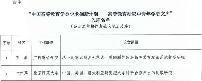 “中國高等教育學(xué)會學(xué)術(shù)創(chuàng)新計(jì)劃——高等教育研究中青年學(xué)者文庫”入庫名單